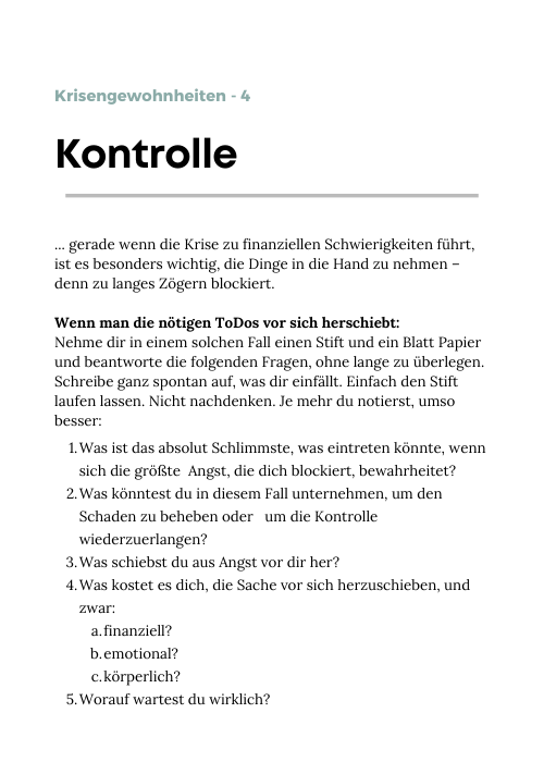 Die in dem Buch „Mit neuen Glücksgewohnheiten besser durch die (Dauer-) Krisen“ diskutierten Gewohnheiten, können durch verschiedene Tools und Übungen leichter in die Tat umgesetzt werden. Meinen Lesern stelle ich dafür kostenfrei Inhalte zur Verfügung, die ich im Laufe der Jahre für meine Seminarteilnehmer entwickelt habe. Sie sind praxiserprobt und können „Pfeile“ sein. Denn in unvorhersehbaren Krisenzeiten, fühlt man sich mit ein paar Pfeilen mehr im Köcher, noch besser gewappnet.